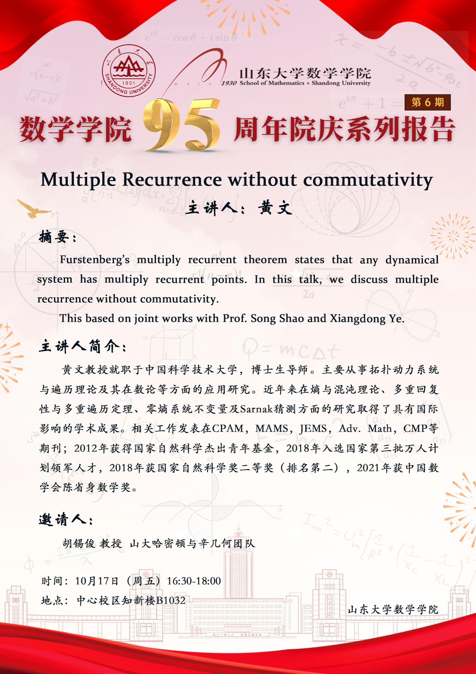上一条:beat365在线体育官网登录入口95周年院庆系列报告第7期:Modelling heterogeneity and its effect on disease transmission dynamics