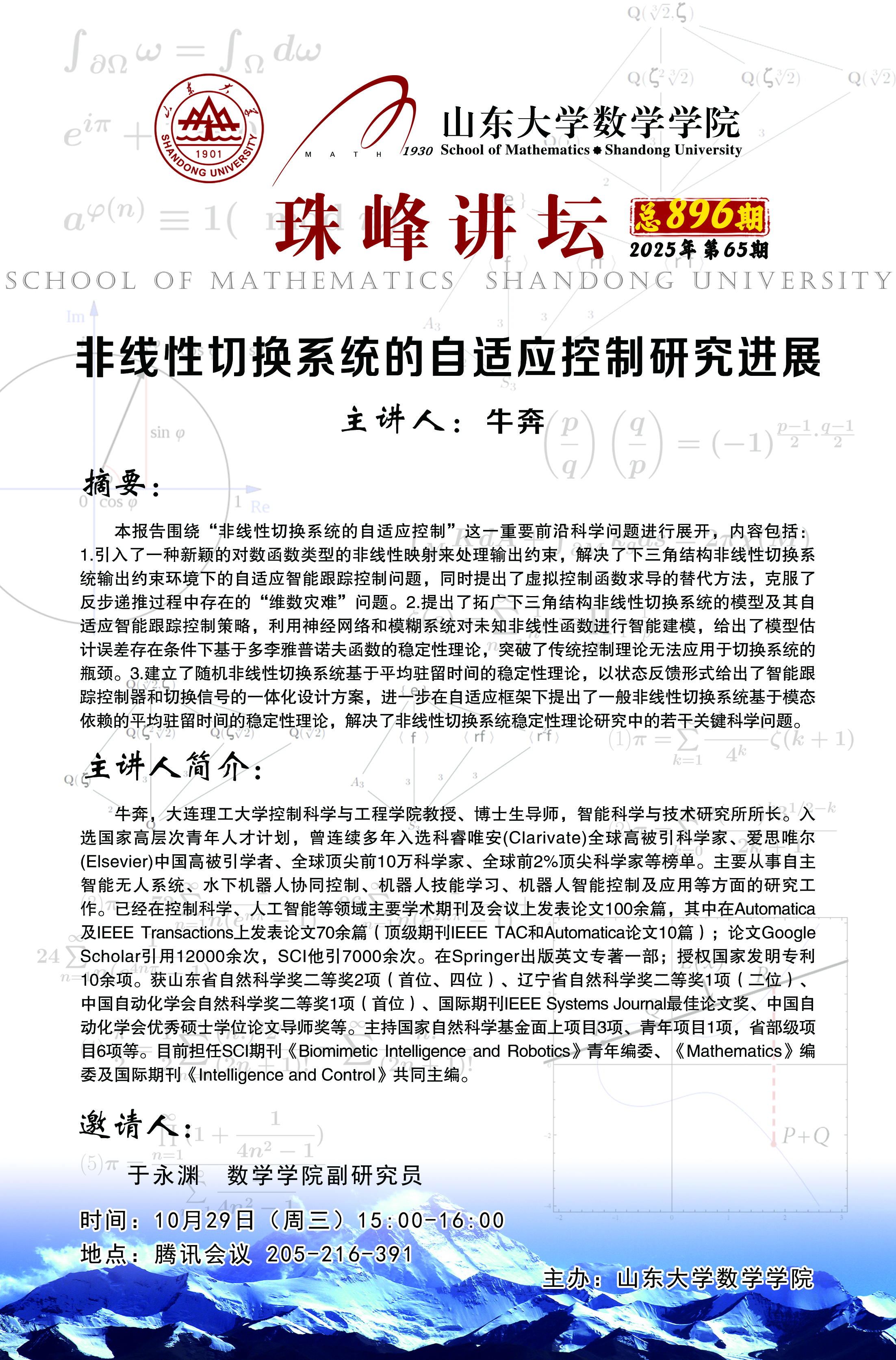 上一条:beat365在线体育官网登录入口珠峰讲坛第897期:Refined Noether-Severi inequality for irregular threefolds of general type