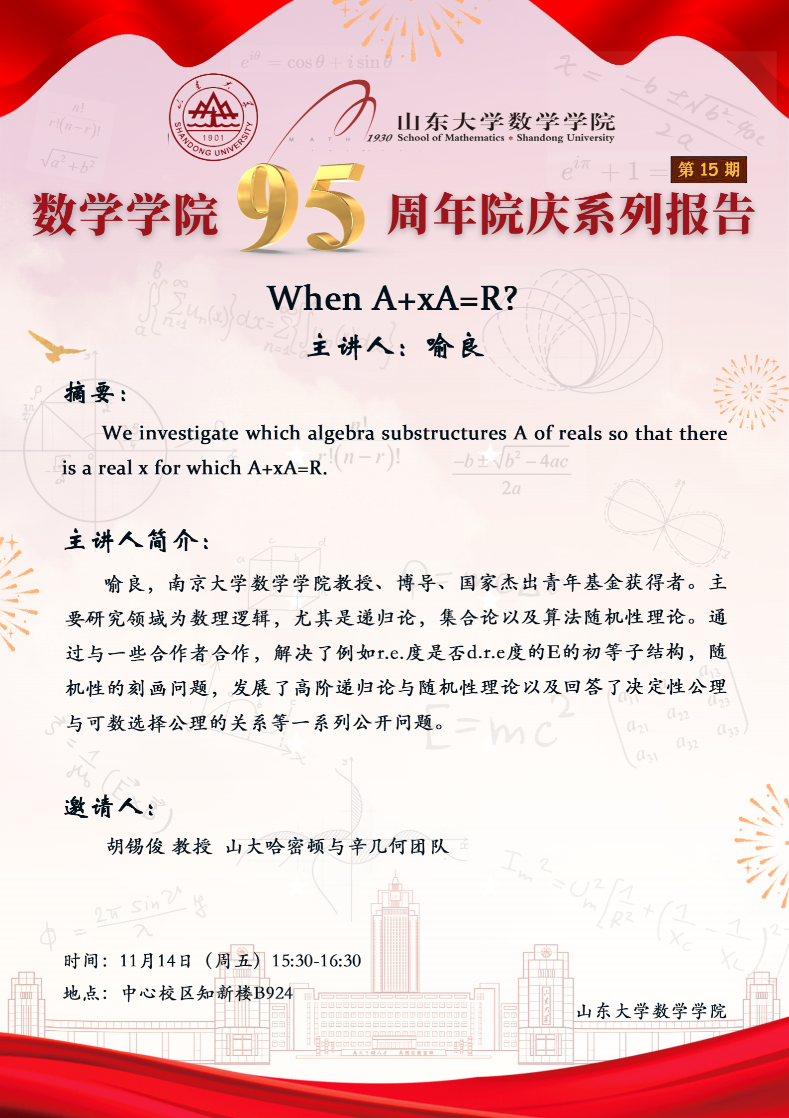 下一条:beat365在线体育官网登录入口95周年院庆系列报告第14期:On equivalence relations induced by Polish groups