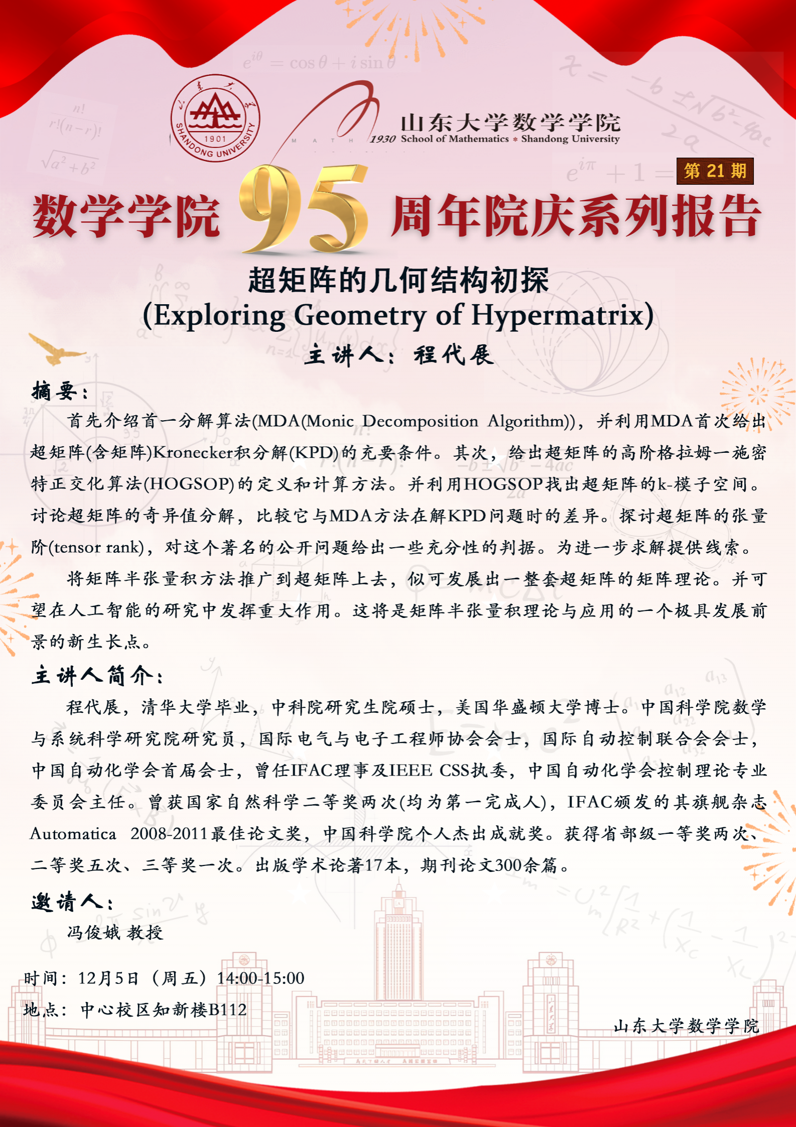 下一条:beat365在线体育官网登录入口95周年院庆系列报告第20期:计数几何与高亏格镜像对称简介