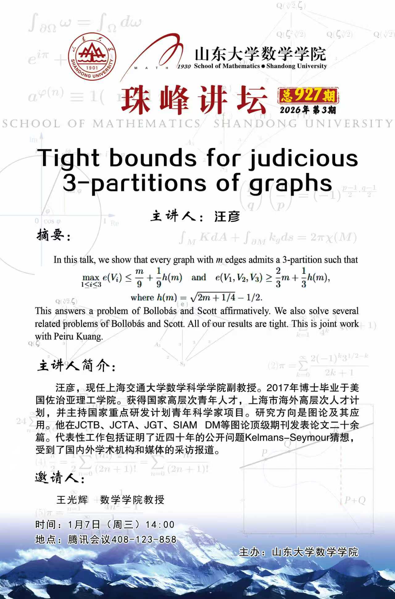 上一条:beat365在线体育官网登录入口珠峰讲坛第928期:Optimal binding functions of some (even hole, cap)-free graphs
