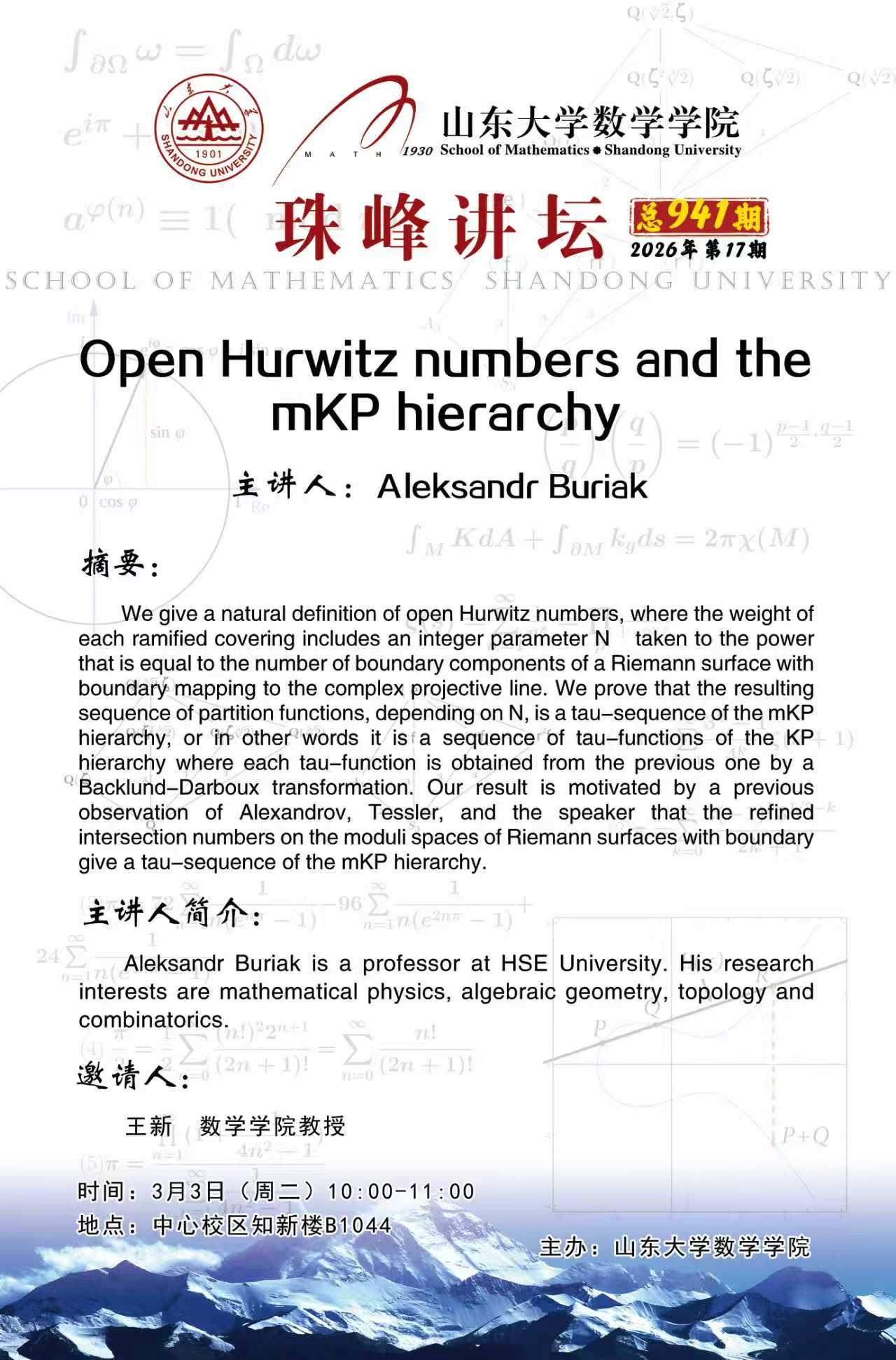 下一条:2026春季课程:组合数学——Ramsey理论