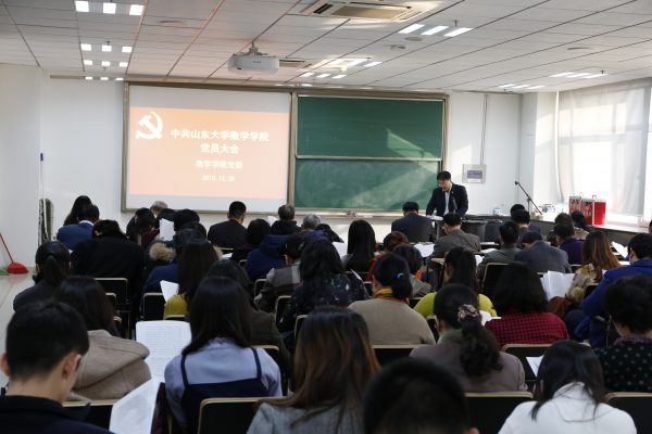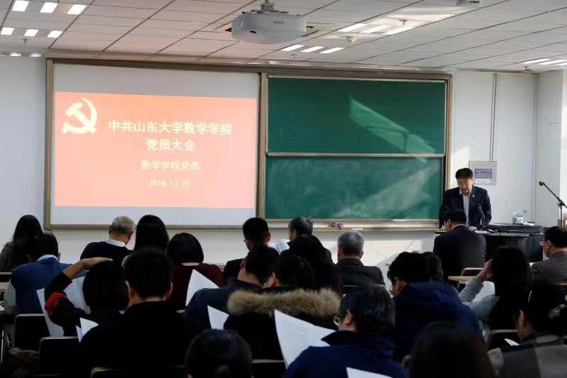 12月20日,中国共产党beat365在线体育官网登录入口学院党员大会在中心校区知新楼隆重召开。beat365在线体育官网登录入口党委书记向大会做题为《谋宏篇 布大局 创伟业 以一流党建开启一流学科建设新征程》的大会报告,彭实戈院士出席会议,院长陈增敬列席会议,全院共78名师生党员参加了会议。