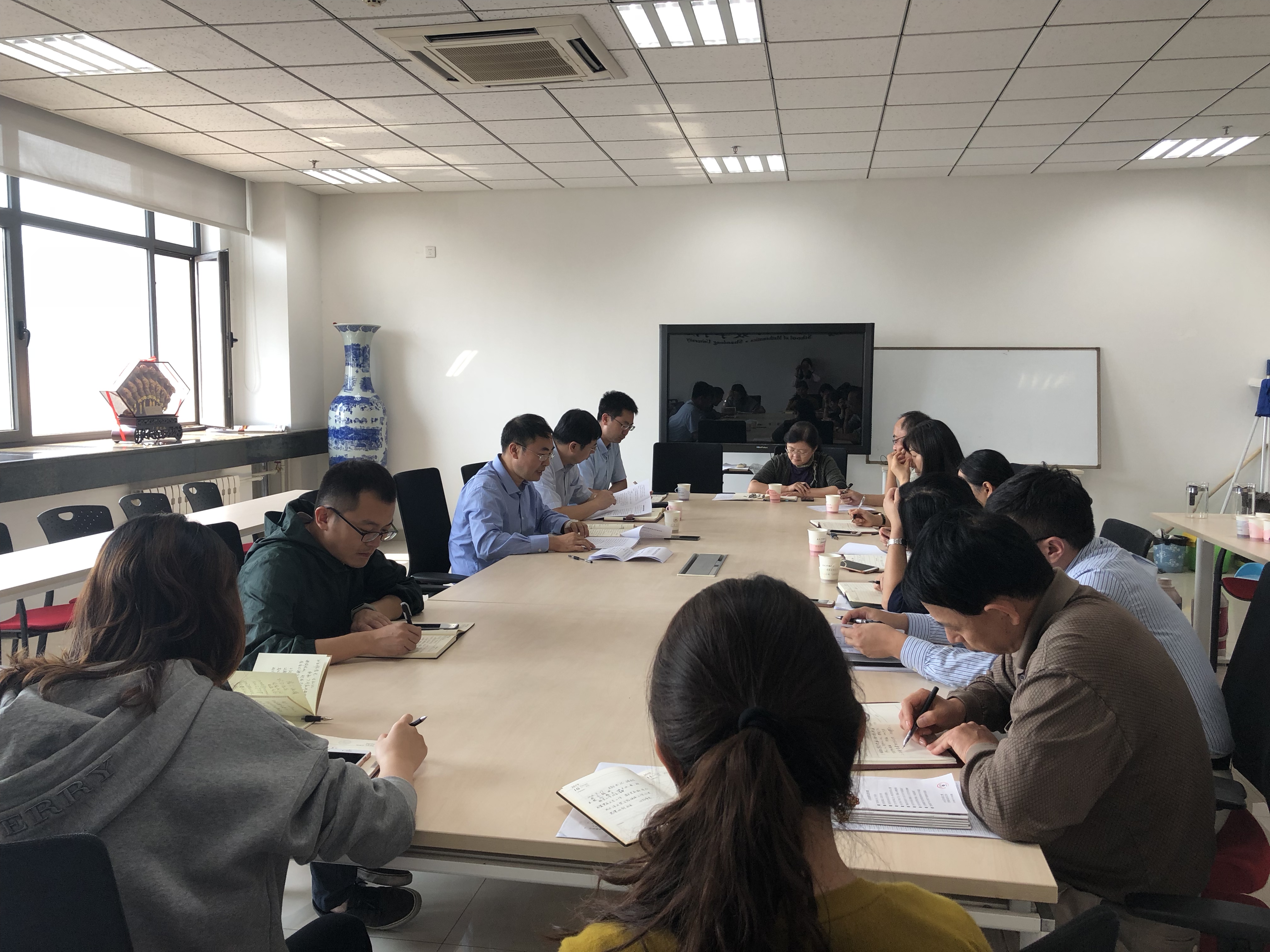 曲明军汇报了基层党委按期换届情况和党员大会的请示工作,布置了相关工作的开展,通报了此次党员大会的名额,原则上要求全体教工正式党员都应该参加党员大会,以及原则上参加党员大会的学生党员比例。各支部书记表示一定积极配合好党委换届和党员大会的筹备。