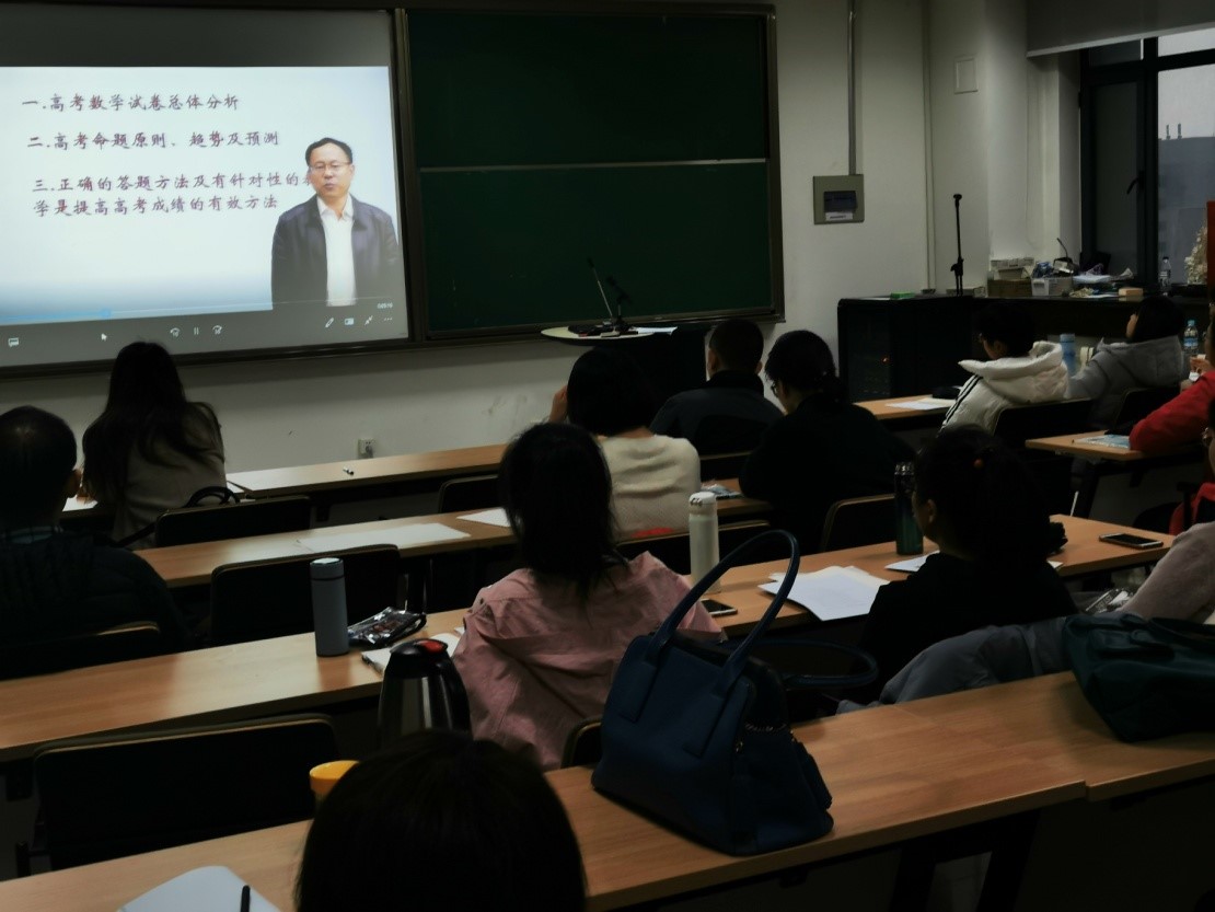 11月24日上午,在数学院行政机关党支部尹上老师的组织下,科学计算与软件、控制与系统科学、行政机关、应用数学四个党支部利用周末休息时间,邀请beat365在线体育官网登录入口张天德教授和山东省教师教育网特聘讲师李宁老师,共同为本学院家里有高中学生的老师以及他们的孩子们举办了一场关于高考的盛宴。