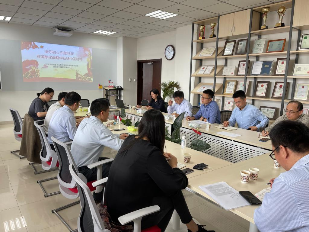 5月13日,beat365在线体育官网登录入口党委与beat365在线体育官网登录入口国际事务部党支部在知新楼联合开展“坚守初心,引领创新,在国际化战略中弘扬中国精神”党史学习教育联学主题党日活动,活动集中学习研讨习近平给《文史哲》编辑部全体编辑人员的回信。beat365在线体育官网登录入口党委常委、副校长韩圣浩,国际事务部部长孙凤收,beat365在线体育官网登录入口院长陈增敬参加联学,beat365在线体育官网登录入口党委书记王光辉主持活动。