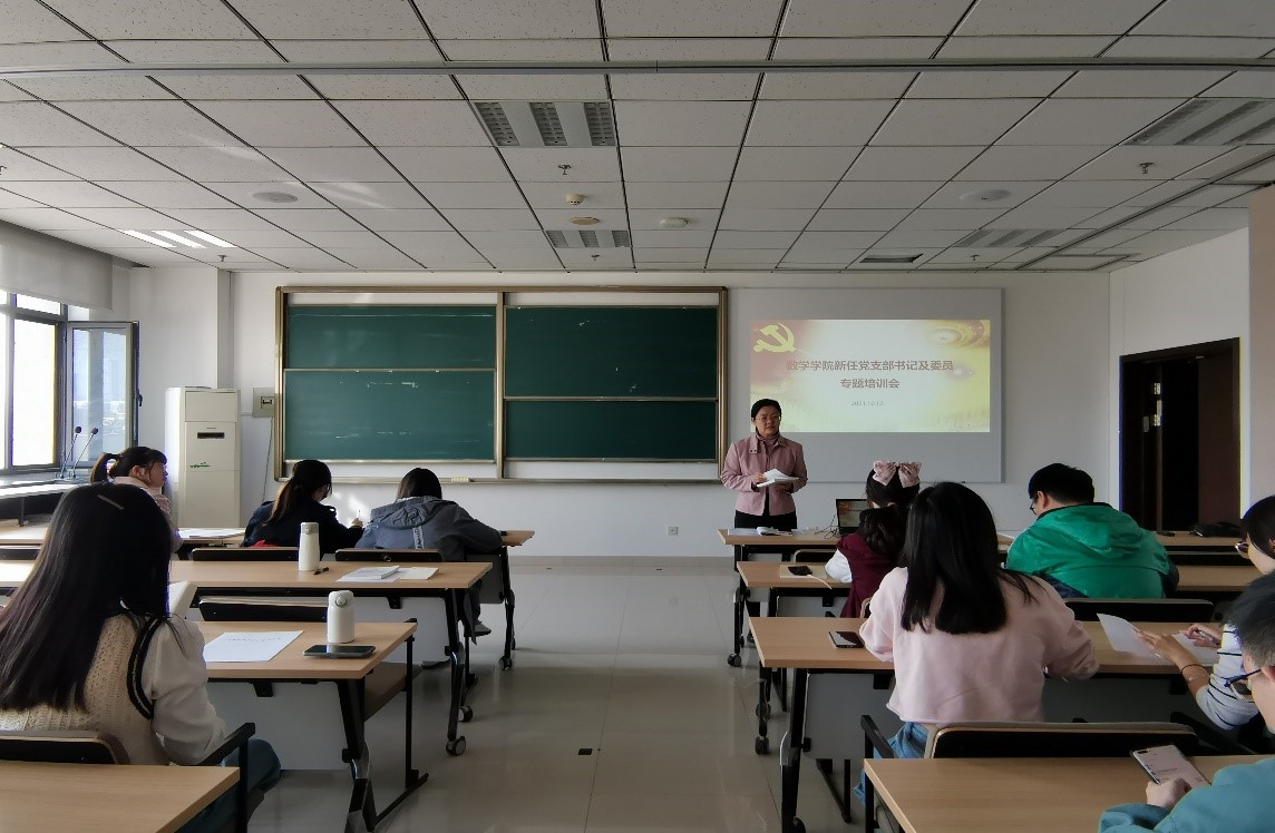 近日,根据学校党员培训计划要求,beat365在线体育官网登录入口党委对支部改选后的党支部书记及委员进行了专题培训,会议由专职组织员崔玉红主持,6个学生支部的书记及委员参加了培训。