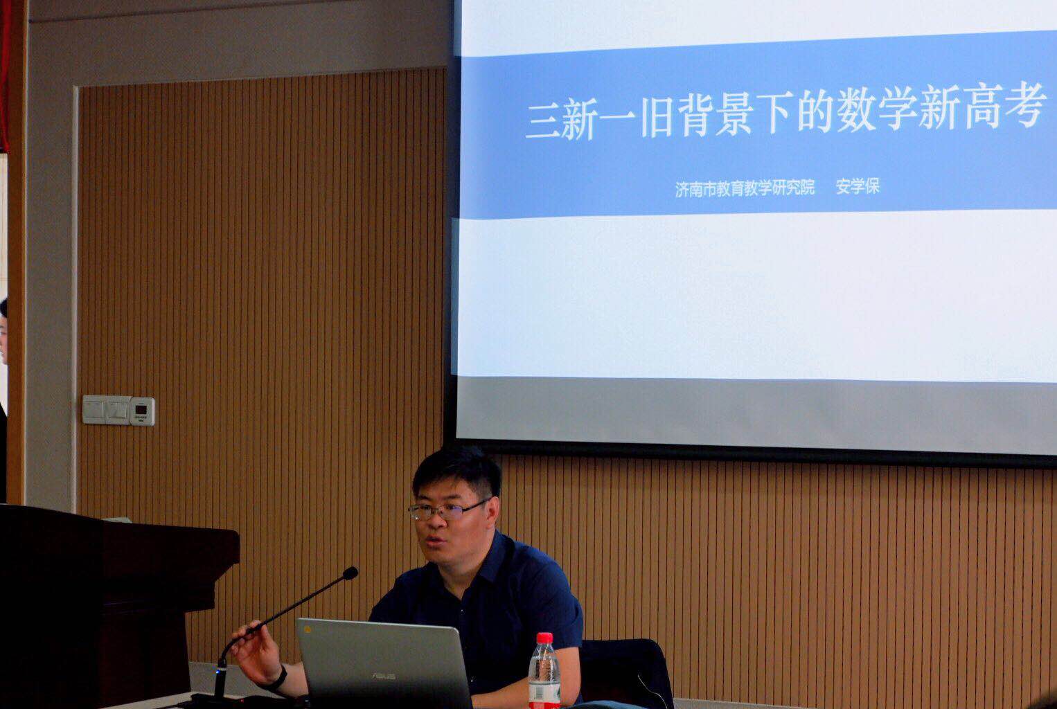 济南市教育教学研究院主任、山东数学会常务理事安学保给大家带来了《三新一旧背景下的数学新高考》主题报告。报告中,安学保主任从基于学习的核心素养、基于理解的新知学习、基于思维的问题解决和基于素养的数学评价四个层面,为与会代表分析了新高考形势下中学数学教学工作的提升路径,引起了代表们的热烈讨论。