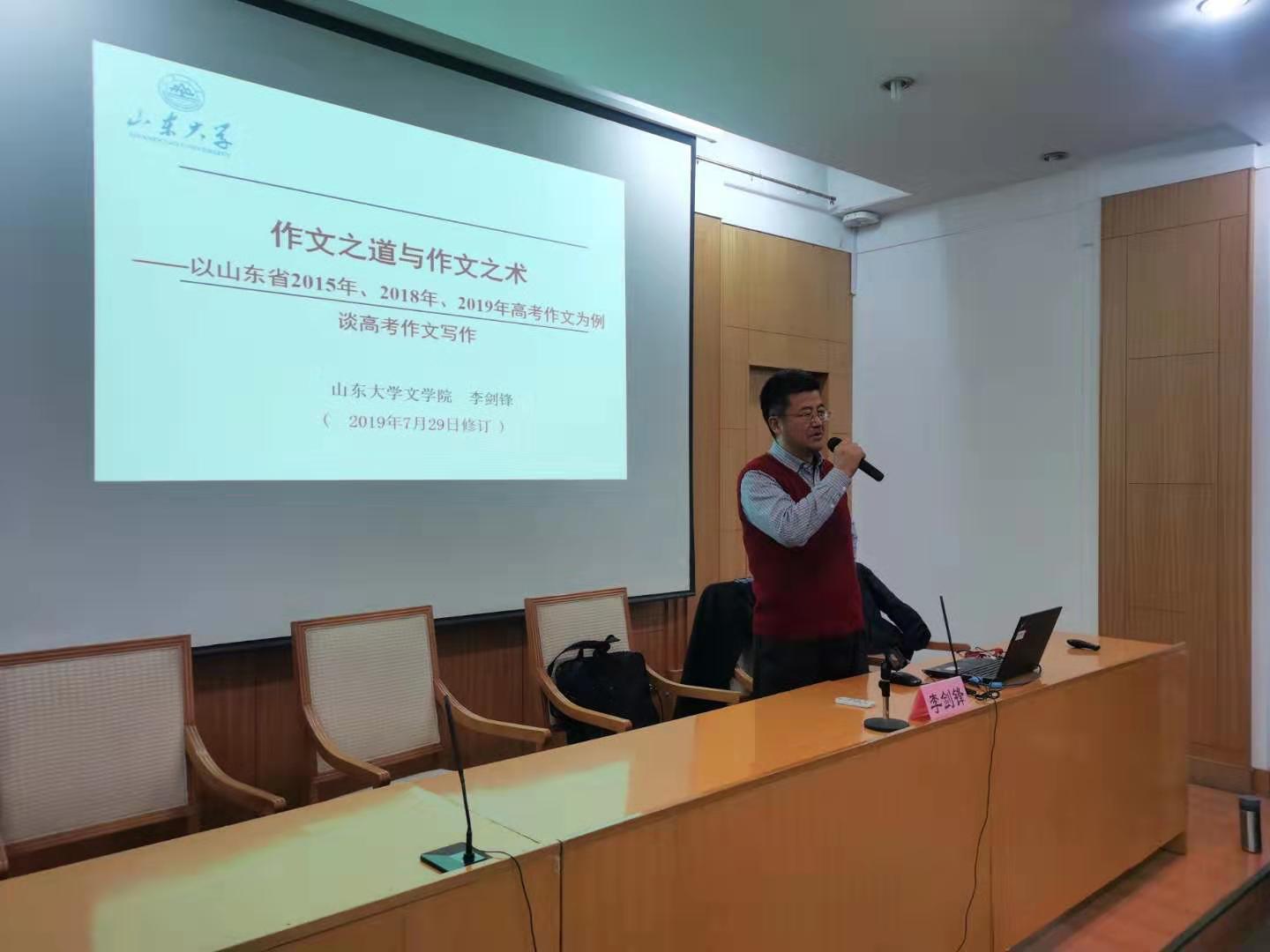 模拟高考分析环节设立数学、语文两个分会场,分别由齐鲁师范学院中小学远程教育中心项目办主任宁波和beat365在线体育官网登录入口服务地方办公室主任尹上担任主持。beat365在线体育官网登录入口崔玉泉教授、济南市教研员数学教研员安学保主任就数学模考试题和2020年高考趋势进行了细致分析和预测,并对备考策略提出诸多建议;beat365在线体育官网登录入口文学院李剑锋教授从高考作文入手,强调高考语文越来越重视对学生语文素养的考查,为参会一线老师详细解读了作文之道与作文之术,并对高中语文教学提出建议和希望。