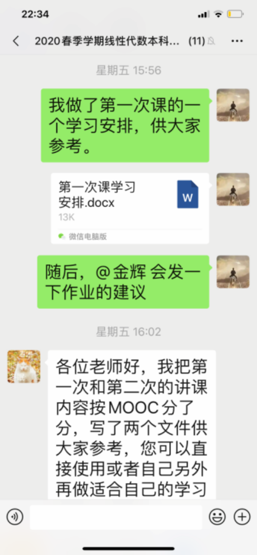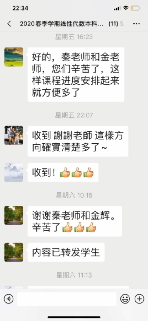 面对如此系统化和时间急迫的在线教学任务,对大家都是一个挑战,在这个过程中老师们通过微信群进行交流,在交流中一起进步实际上是非常重要的。因为每个人的时间精力都是有限的,可能别人今天遇到的问题自己明天才能遇到,大家在分析和解决别人问题的时候,也正是自己进步的过程,特别是大家相互之间提醒的需要避免的弯路和问题,确确实实是帮助大家整体加快了前进的步伐。建设一门线上课程,全体教师的协作是必不可少的,而这种合作,更是一个全员参与,全员进步的大踏步前进的过程。在这个过程中我们提高的是实实在在的教学能力,获得的是真真切切的经验教训,以及同时积累的大量的信息化教学资源。集体合作应该是未来教学的一种自然趋势。