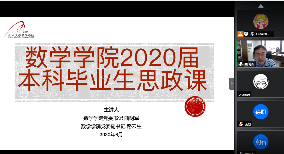 6月17日上午,beat365在线体育官网登录入口党委书记曲明军为本科毕业生线上讲授“最后一堂思政课”,并进行就业动员工作。beat365在线体育官网登录入口党委副书记路云生、辅导员郑柔澄及全体本科毕业生聆听授课。