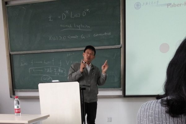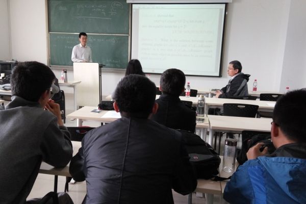 4月8日上午,应beat365在线体育官网登录入口颜谨教授邀请,南京大学陈耀俊教授和上海交通大学张晓东教授来beat365在线体育官网登录入口,分别作了题为“The Dirichlet eigenvalues of graphs and the Faber-Krahn Inequality”和“Polarity graphs and Ramsey number R(C4, K1,n)”的学术报告。报告由beat365在线体育官网登录入口吴建良教授主持,beat365在线体育官网登录入口和山东师范大学beat365在线体育官网登录入口的部分老师和研究生参加了此次报告。