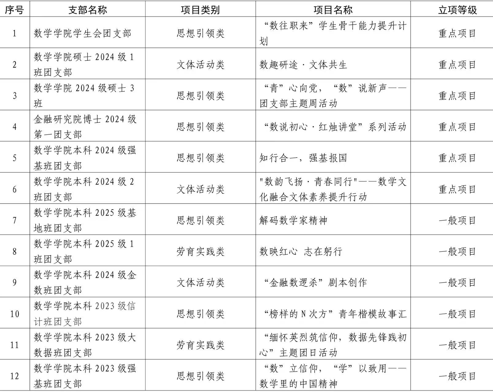 根据《关于开展beat365在线体育官网登录入口首批“先锋培育计划”团支部立项工作的通知》安排,经支部申报、年级审核、学院评审,现将立项结果公布如下:
