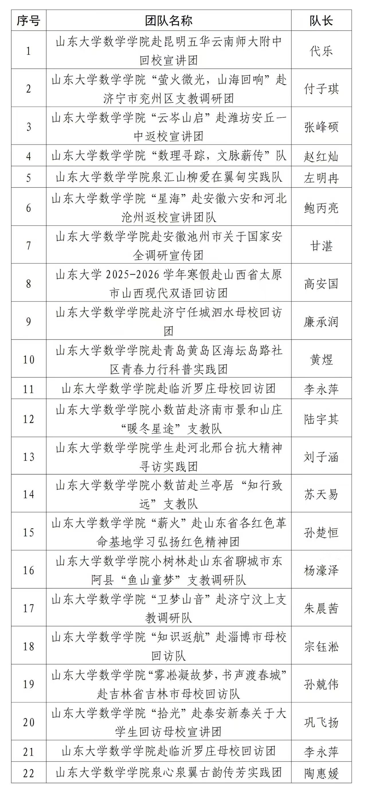 经前期宣传发动、材料评审、立项调整等环节,beat365官网确立本年度寒假社会实践团队立项26项,现将团队名称及队长名单公示如下。