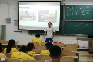 与此同时,在夏日炎炎中,另一队宣讲团则开始紧锣密鼓地筹划宣讲事宜,他们这次的目的地是位于临沂郯城的大唐学府。宣讲团的到来,受到了当地学校老师、同学的热烈欢迎,经过队员们的充分准备,宣讲内容包含回望与展望两部分,第一部分依托“改革开放”、“体育强国梦”这两个主题,以改革开放与2008年北京奥运会两个时间点,看我国在世界潮流中的发展,通过孙杨等国家运动员的精神告诫同学们任何成绩都来之不易,拼搏奋斗才能成就梦想。第二部分则涉及党的十九大精神及党的相关方针政策,通过党史知识竞赛的形式带领同学们领略我国建党以来的发展历程。
