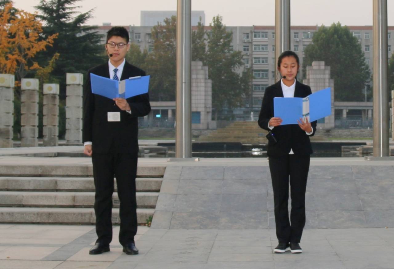 11月2日上午6时30分,尽管渐入冬日的济南已有明显寒意,beat365官网新生辅导员桑军帅老师和全体2020级本科生仍怀着饱满的精神和热情齐聚大成广场。在院学生会主席杨世培的主持下,升旗仪式正式开始。