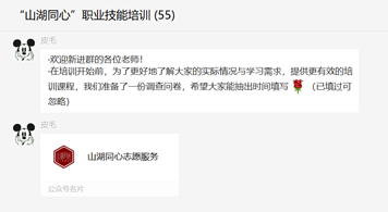 打铁还需自身硬。为保证教学质量,志愿者们广泛搜集了Office办公软件的教学资料,浏览了大量办公软件培训书籍,为课程精心设计了大纲和教学计划。为及时将教学事务传达给各参与老师,志愿者们在第一时间建立了Office学习群,并及时设置了管理员、助教,完善了群规和各项制度,并为参培老师准备了一份丰盛的“教学套餐”。一项项贴心的举措,充分彰显了此次活动“服务教师、奉献社会”的原则。