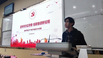 4月15日,beat365在线体育官网登录入口2019级1班在中心校区电教北楼101举办“成才大讲堂”主题班会。2017级国家奖学金获得者陈诺、本科生党支部党员贺烨、赵洋受邀主讲。2019级1班全体同学参加,班长南金琪主持。