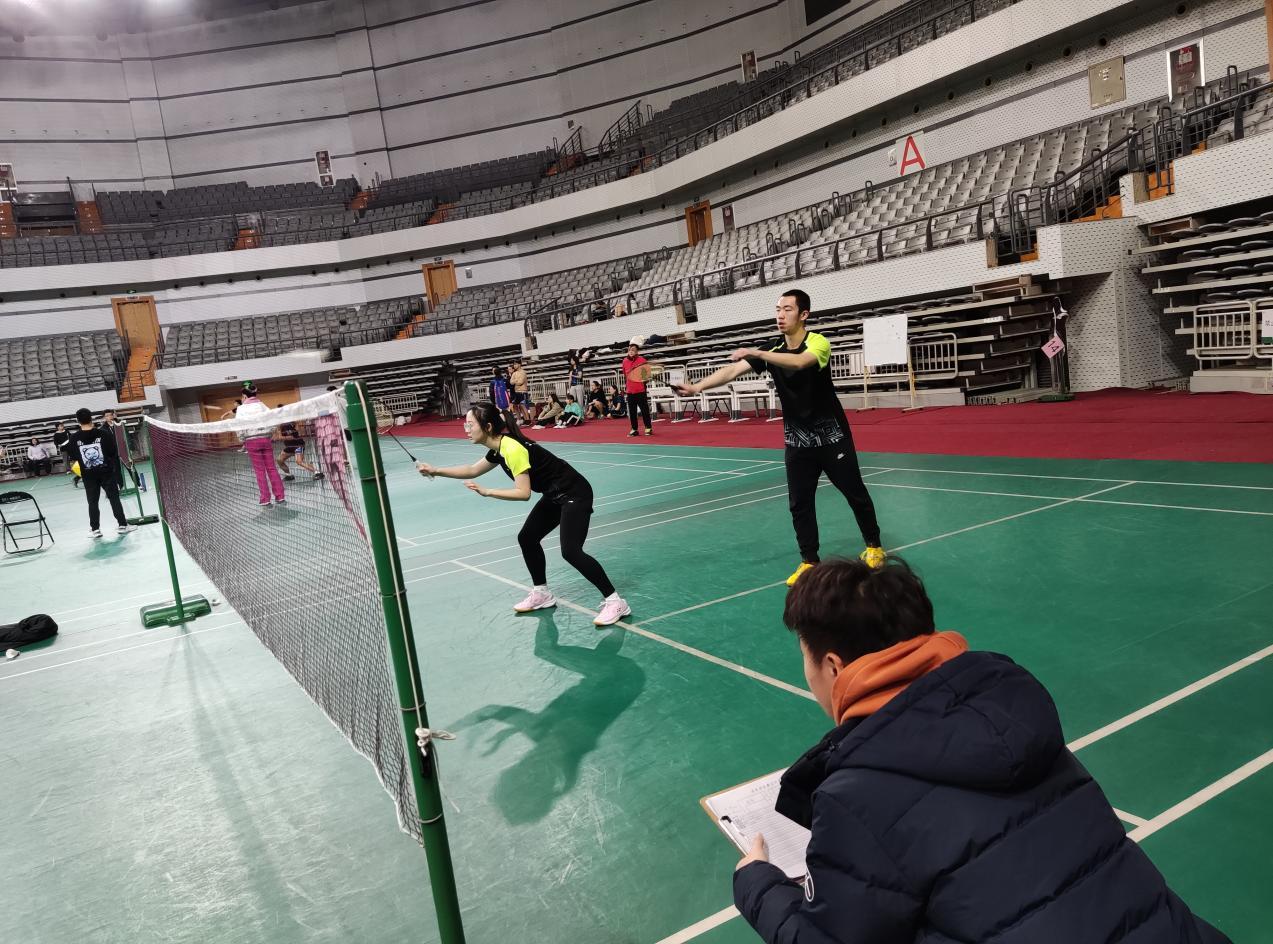 在四进二的比赛中,beat365官网对上实力强劲的外语学院,比拼战况激烈。孙安泽与张芯萌在混双比赛中夺得了首场胜利,之后的男双比赛又下一城。第三场,汪柃利和郭思薇在女双比赛中因状态不佳惜败外语学院,最后的男单比赛中,钟子靖以2:0的成绩轻松取胜。beat365在线体育官网登录入口有惊无险地挺进决赛!
