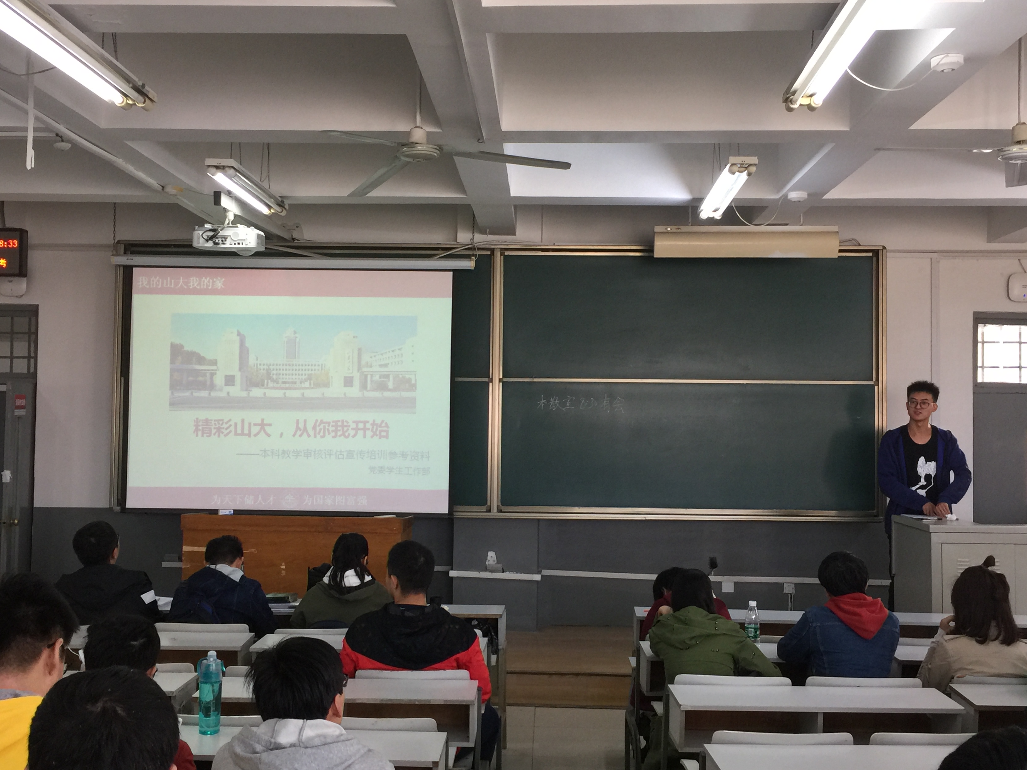 同学们一起学习了《精彩山大,从你我开始——本科教学审核评估宣传培训参考资料》,班长王颢琛从本科评估、校史校情、学习成长和行为规范四个方面带领大家全面了解本科教学审核评估以及beat365在线体育官网登录入口办学历史,包括什么是本科教学审核评估、审核评估的“五个度”、beat365在线体育官网登录入口的办学定位、发展目标、学校人才培养总目标、办学宗旨、校风校训以及beat365在线体育官网登录入口的校园风情文化史、素质拓展培养计划、三跨四经历、对教师教育教学水平的评价机制、教学科研设施的开放程度、校院两级毕业论文监控机制、在线开放课程教学平台、多元化考核与评价、新生入学教育体系、学涯指导体系、心理指导服务体系、就业创业指导服务体系以及学生礼仪规范等等。随后班长又带领大家一起学习了beat365在线体育官网登录入口审核评估应知应会五十问。