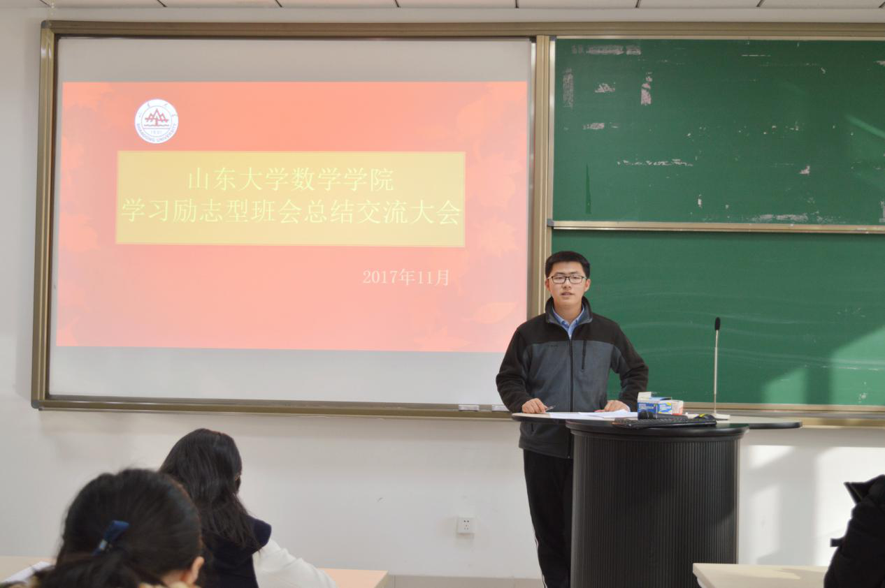 会议伊始,李东霖公布各班所获奖项,对获奖班级表示祝贺,并就报销细则和先进个人评选规则向大家进行详细说明。随后,在此次励志型班会活动中表现出色16级金融数学班和15级统计班向大家展示班会视频,并由主要负责人对策划组织班会的经验进行分享。16级金融数学班班会不仅邀请到优秀的学长学姐分享学习经验,还带动同学们交流畅谈学习感悟,让同学们真正有所学,有所悟。班会中加入的抢答游戏环节更是活跃气氛,拉近距离。此次金数班班会总导演曹塬向大家介绍了从确定班会思路,人员分工到班会开展与后期视频制作的全过程,体现出策划此次班会的严谨细致,认真负责。15级统计班班会邀请到已经保研的学姐介绍保研流程,分享保研经验,为同学们答疑解惑;班委还就契合专业的基金理财情况进行分享,并悉心提醒同学们多加运动;你画我猜环节所猜题目取自课本,体现出浓浓的数学气息。统计班班长米俊喆指出此次班会策划过程中,通过负责人权力下放,班委们通力合作和对同学们积极性的调动,取得了较好的组织效果,使每一位同学参与进来,真正在游戏中体味学习的快乐。最后,李东霖又向大家展示了几个精彩的班会视频,供大家讨论学习,相互借鉴,共同提高。
