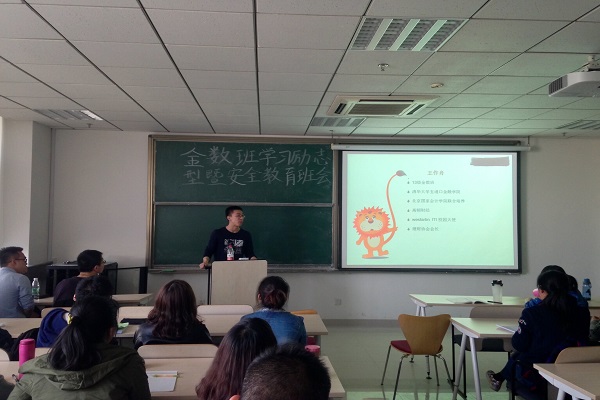 4月20日下午,beat365在线体育官网登录入口2014级金融数学与金融工程班于beat365在线体育官网登录入口中心校区知新楼B座召开了本学期学习励志型暨安全教育班会。会议由班长余鹏主持,beat365在线体育官网登录入口2013级统计班唐肖潇、2013级统计班廉锐、2013级信安班刘新明及经济学院2013级金数班王帆、王作舟同学与大家分享出国、保研与考研经验。2014级金数班全体成员参加了这次班会。