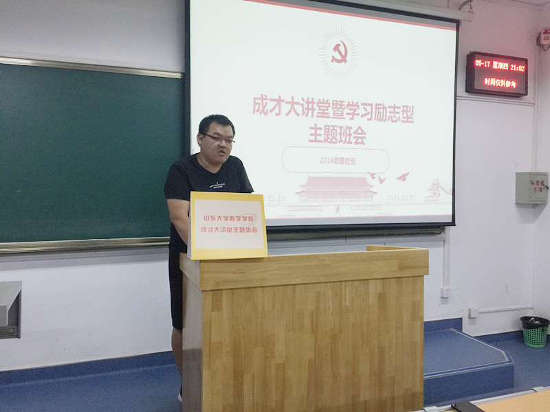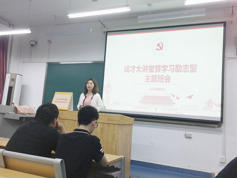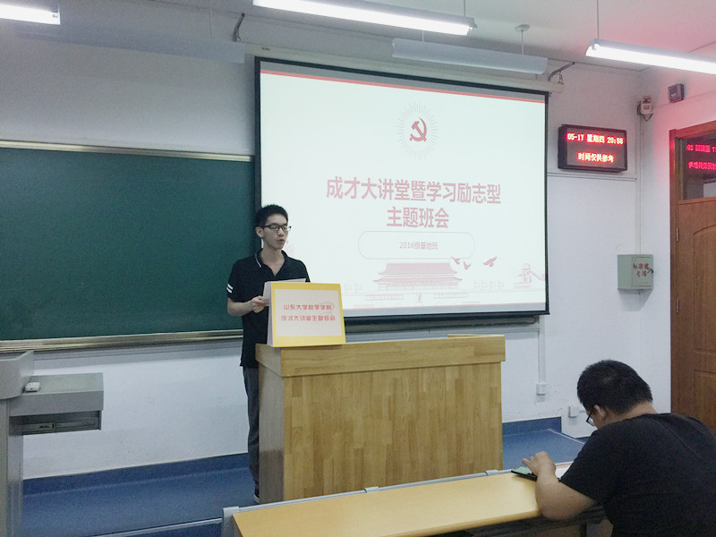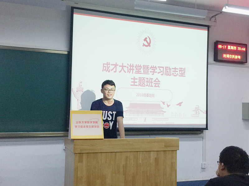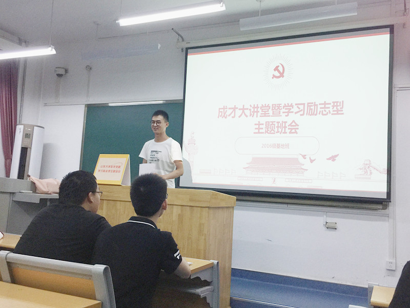 5月17日晚,beat365在线体育官网登录入口2016级基地班在中心校区公教楼举行成才大讲堂暨学习励志型主题班会,会议邀请到辅导员郑柔澄老师,以及2014级吴纪龑、马成林、刘兆磊、刘朝锋四位学长与同学们交流。会议伊始,郑老师表达了受邀参加班会的喜悦与欣慰,对2016级基地班全体同学表达了殷切的期望。