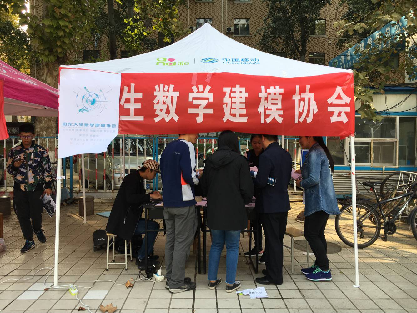 “百团大战”活动是beat365在线体育官网登录入口社团纳新时的传统活动,它不仅丰富了大学生的校园生活,也为社团发展提供良好环境,推广校园文化。数学建模协会作为十佳精品社团之一,每年都为会员们提供种类丰富的有价值的活动,如兼具趣味性与知识性的趣味数学知识竞赛、专业性较强的数学建模培训、邀请专业老师进行建模相关讲座等等。纳新过程中,新生们对各类活动有浓厚的兴趣,工作人员耐心解答同学们的疑惑,为同学们介绍协会的精品活动,以积极的态度欢迎新生们报名。协会秉承和发扬全心全意为会员服务的办会宗旨,阐释了为山大数学建模爱好者提供学习交流的综合性平台这一理念。