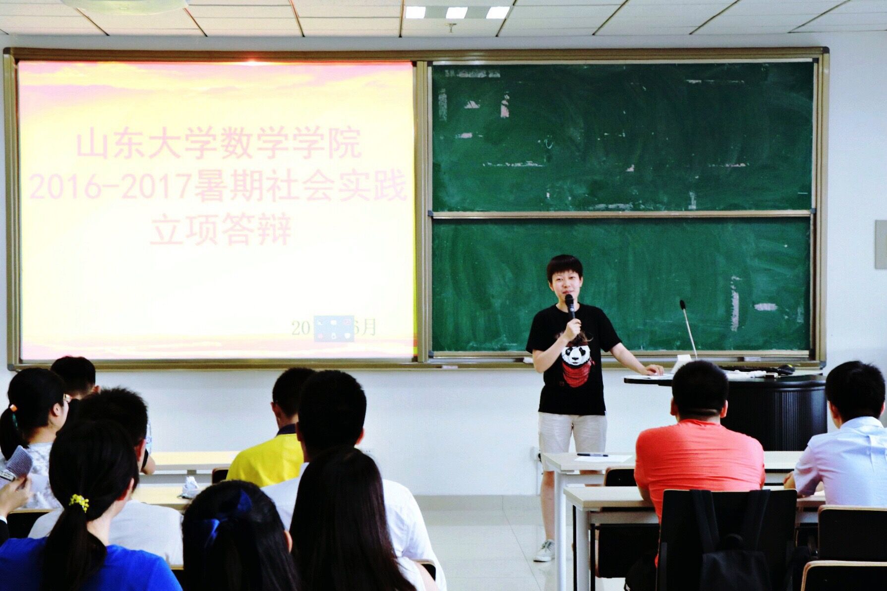 二十支队伍的通过抽签决定了顺序,随后依次上台进行立项答辩。各个社会实践队伍的代表们分别从活动背景,活动目的,队伍构成,团队优势,预期成果等方面向大家展示了自己社会实践团队的基本情况。二十支队伍的实践内容各具特色,既有前往贫困山区,通过支教帮助留守儿童;也有根据数学学科特色,选择信息安全与大数据等方面的实践项目;还有的队伍落实喜迎十九大号召,选择美丽中国或红色主题,此外,还有的队伍选择了解文化产业发展方向等。答辩过程精彩纷呈,体现了大学生关注社会科技文化等各领域的发展及问题、关心弱势群体、注重树立爱国精神。答辩结束后,刘怡彤向大家详细说明了策划书,申请书中出现的一些问题,并希望大家尽快改正。