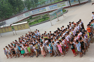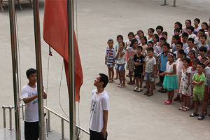 7月17日早上八点整,beat365在线体育官网登录入口赴鲁西南地区支教调研团全体队员和学生在鄄城县董口镇中心完小举行了庄严的升旗仪式。伴随着富有节奏感的入场音乐,各班学生在老师的带领下有序入场。