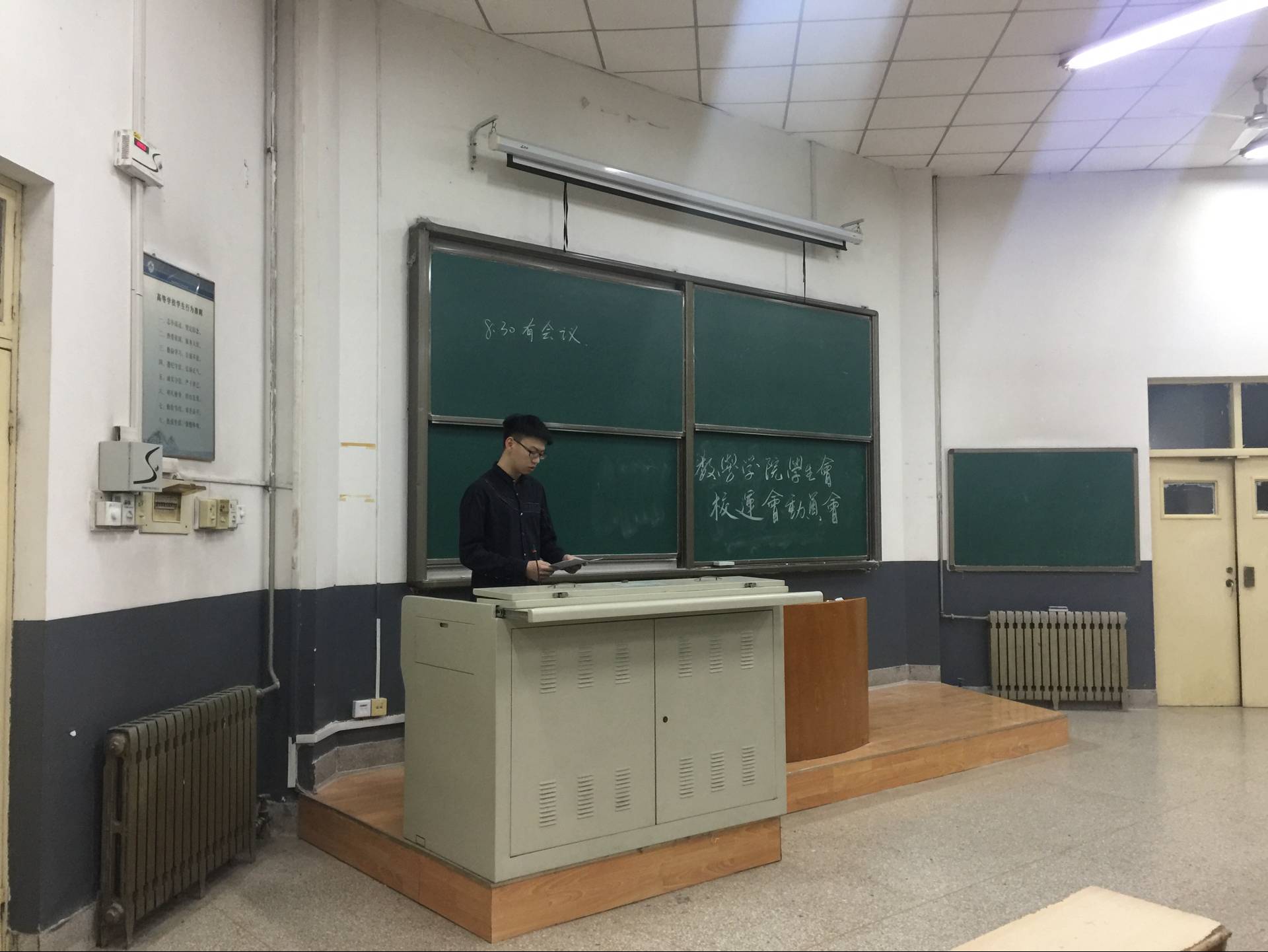 之后,学生会体育部部长李玉浩向各部门分发分工表,详细说明了各部门在校运会期间的分工情况,并强调了运动会的召开时间以及一些注意事项。最后李东霖做了总结,再次强调校运会期间的安全问题,并祝愿运动员能够在本次比赛中赛出风格、赛出水平。