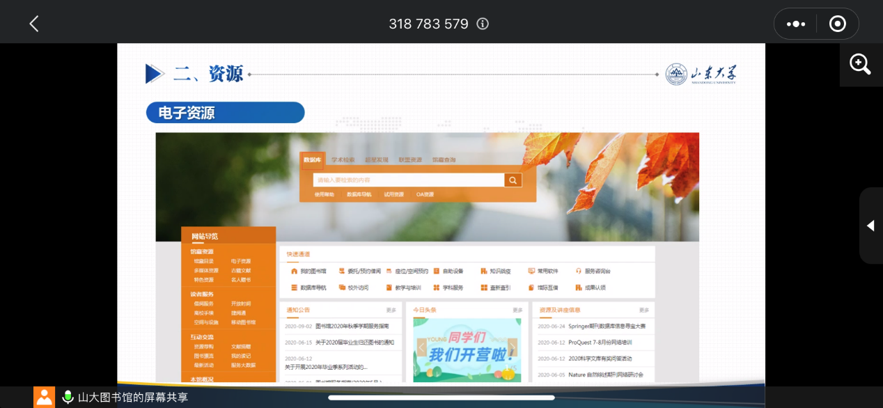 9月16日下午,beat365在线体育官网登录入口图书馆信息咨询中心的老师为beat365在线体育官网登录入口2020级研究生新生做了“图书馆服务与资源举要“的线上讲座,给同学们介绍了山大图书馆的馆藏以及查阅相关资料的方法。