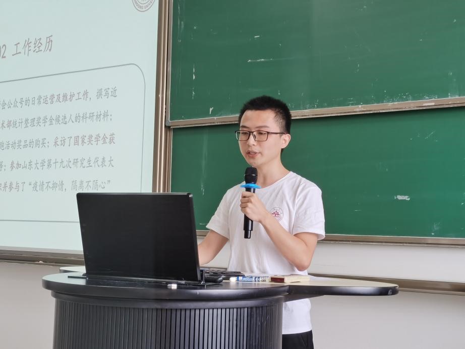 上午9时30分,大会在嘹亮的国歌声中开幕。张艳强首先对研究生会学生干部们的工作表示肯定,对研究生会下一阶段的工作方向提出希冀:一是要提高自己的思想觉悟,将个人成长成才融入到国家的发展过程中,实现个人梦与中国梦梦梦相连,做有担当、有作为、有品质、有修养的优秀研究生;二是要强化责任担当,注重以学生为本,要始终保持务实肯干的优良作风,全心全意为同学服务;三是不断加强自身的建设,做到德智体美劳全面发展,树立终身学习的理念。特别提到了数学学科新一轮双一流建设,需要同学们每个人发挥作用,希望大家提振精神、脚踏实地,更好地团结凝聚青年力量,更好地服务学生成长,为实现中国梦、山大梦贡献自己的力量。