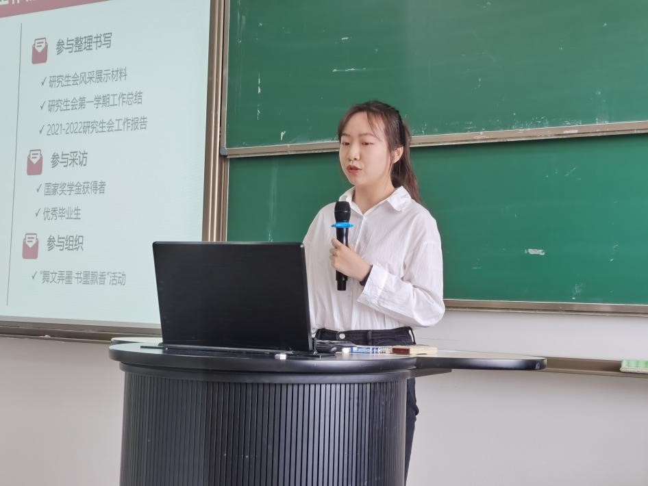 开幕式后,大会审议并通过了《beat365在线体育官网登录入口研究生会章程(草案)》。随后,研究生会主席丁圣男作题为《革故鼎新 锐意进取 团结合作 继往开来》的工作报告,她回顾了研究生会在组织改革、服务成长、特色工作三方面所做出的努力与成果。鲁皓为2021届研究生会骨干成员颁发证书。