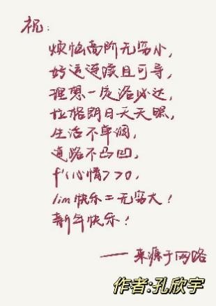 为你“Π”忧解难活动,旨在丰富同学们的日常生活,陶冶美学情操,活动举办以来同学们积极参与,结合自己的所学知识,创作了一系列包含数学元素、数学符号的文艺作品,营造了美好的文化生活和科研氛围。在这个特殊的时期,用数学人的方式为自己为身边的同学为一线的工作者们加油打气,“没有一个冬天不会过去,没有一个春天不会到来”,有温情的话语,有温暖的祝福,有温度的关切,展现了数院学子的蓬勃生机和活力!
