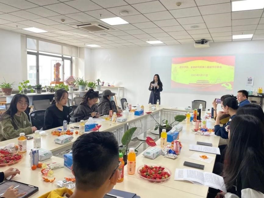 与会同学分别围绕党的二十大精神、2023年“两会”十大热词、中国式现代化本质要求等内容,分享了学习心得。大家纷纷表示,要坚定理想信念,厚植家国情怀,坚持不懈用党的创新理论武装头脑、指导实践;要坚定不移听党话、跟党走,敢想敢为又善作善成,立志做有理想、敢担当、能吃苦、肯奋斗的时代新人。