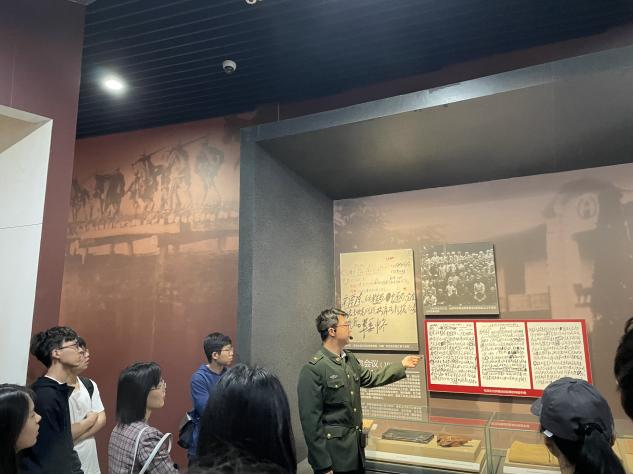 同学们首先跟随讲解员在一层参观,通过一封封革命家书、一件件血色战袍等实物,认真学习了革命英雄们的生平事迹及济南战役情况,深刻了解了济南战役在解放战争史上的地位和意义,用心感悟革命先烈们的拼搏与付出。二层展厅通过展品、图片和多媒体等形式生动地再现了战斗的场景和情景,展示了济南战役的战斗序列和战斗过程,介绍了济南战役的指挥部和指挥官及其战略决策和指挥调度。通过讲解员的讲解,同学们对济南战役史实有了更为客观和全面的认识,更加深刻理解了中国革命道路的艰难曲折。