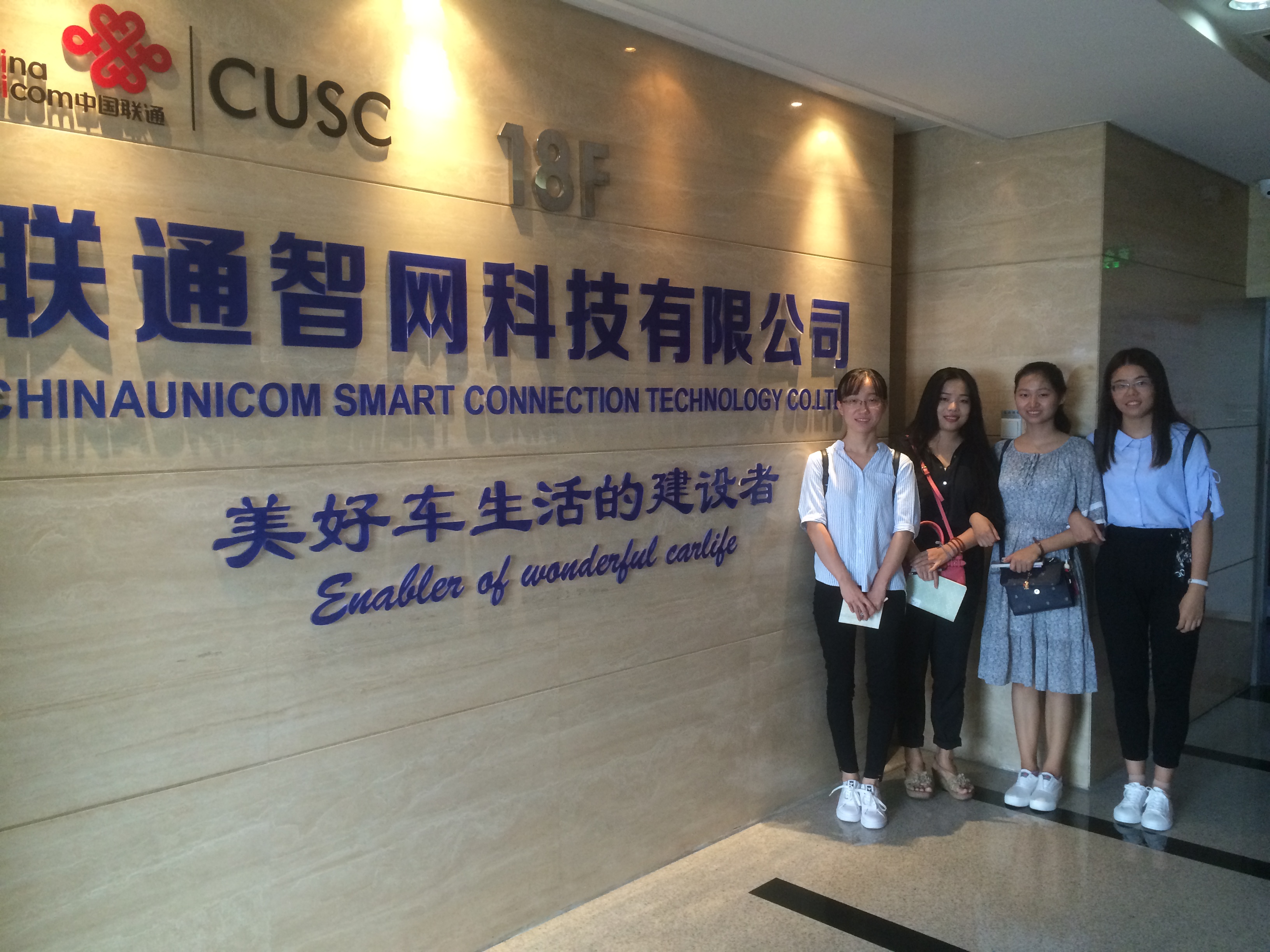 实践团首先来到联通智网科技有限公司,beat365在线体育官网登录入口信息安全专业2017届硕士毕业生林尚雨接待并带我们参观了该公司。作为新兴产业,该公司的成果突出,先后获得多项荣誉。该公司主要业务是与各大车企进行合作,如今已经与60多家车企有合作关系,在不远的将来,有望实现从车间交互到车与任何电子设备进行交互的突破性进展,期待未来能通过计算机网络实现真正的无人驾驶。同时,学姐还告诉我们,虽然公司性质还是以通信为主的央企,但通过大数据与云计算服务,运营模式可能会越来越趋于互联网公司,更加灵活。看到努力工作的工作人员,我们也期待未来可以加入到具有这样的积极努力的工作氛围的公司中工作。