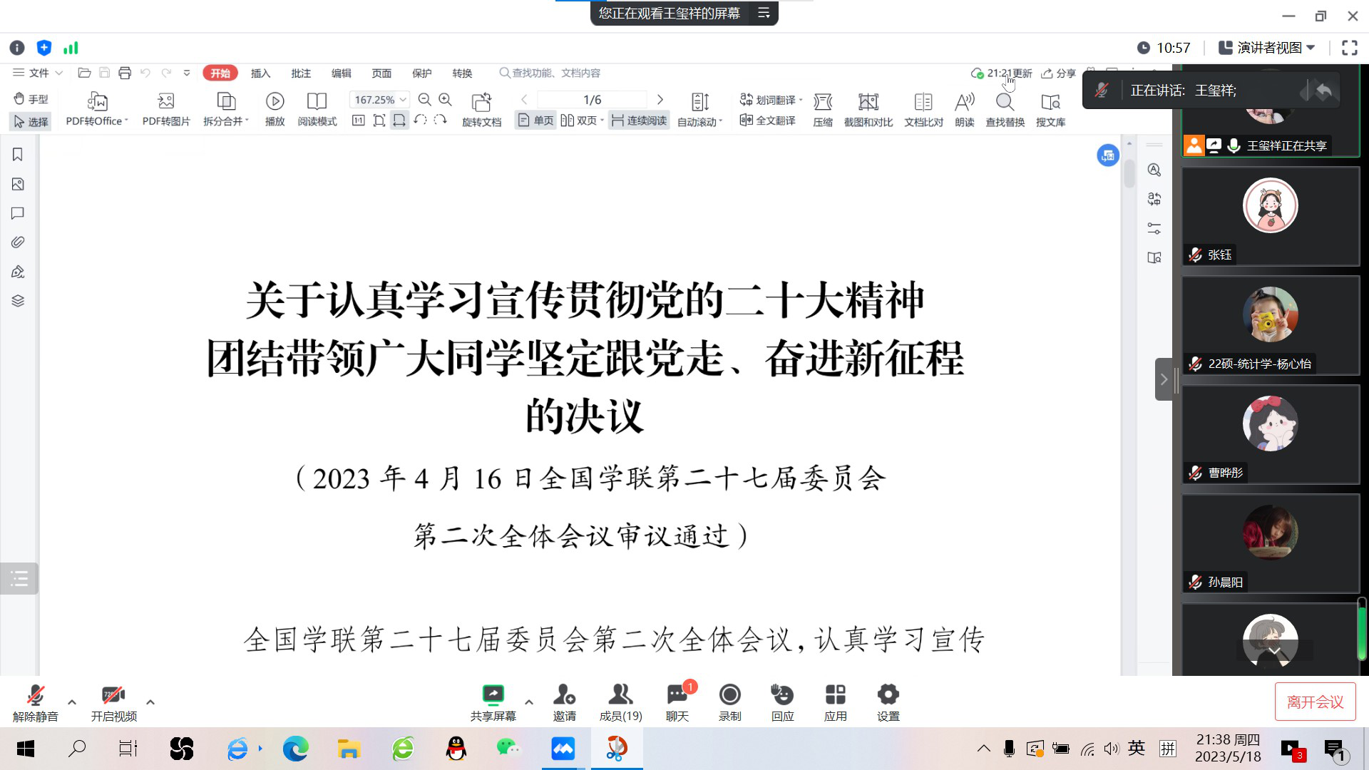 4月15日至16日,全国学联第二十七届委员会第二次全体会议在京召开,就学联学生会组织团结带领广大同学学习党的二十大精神、坚定跟党走、奋进新征程作出研究部署。beat365在线体育官网登录入口研究生会全体成员高度关注会议,认真学习会议文件,领悟会议精神,并对文件内容展开了深入交流与研讨。