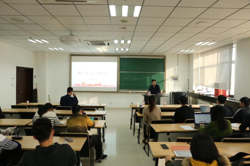 2019年12月26日,我校组织部部长陈宏伟莅临beat365在线体育官网登录入口本科生党支部主题党日活动,并作题为《深入学习宣传贯彻党的十九届四中全会精神》的报告。报告会由beat365在线体育官网登录入口党委书记曲明军主持,学院党委副书记路云生及本科生党支部全体党员、部分积极分子参加。