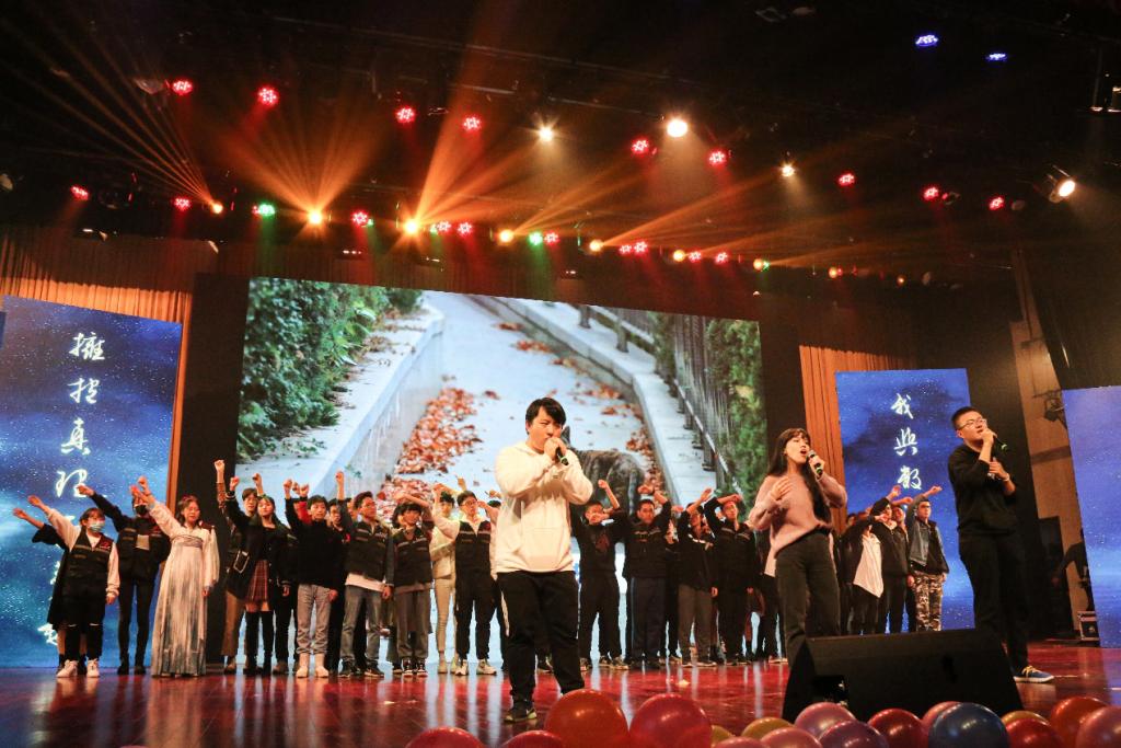 随后,一个个精彩的节目相继呈现。二胡独奏《千本樱》,民族乐器的悠扬与电子音乐的动感结合催生了神奇的化学反应,令人耳目一新;情景剧《成人礼》结合当下网络流行词汇,生动形象地反映了人生哲理,令人在忍俊不禁时若有所思;相声《桃叶尖》展现了诙谐幽默的台词,通俗而不失趣味,惹人捧腹大笑;长笛与钢琴联合阐述的《大鱼》别有一番风味,不疾不徐,通过灵动的韵律,将深情和忧思娓娓道来;舞蹈串烧及《I can’t stop feeling special》以动感的音乐和极富张力的舞姿,演绎青春奔放之美感;歌曲《龙卷风》、《表态》、《Someone You Loved》带来一场音乐盛宴,余音绕梁,掌声不断,将晚会推上小高潮;910乐队献上的歌曲《we are young》点燃全场,热烈诉说少年人的意气风发,“我们正值年轻,即将原地起航”。