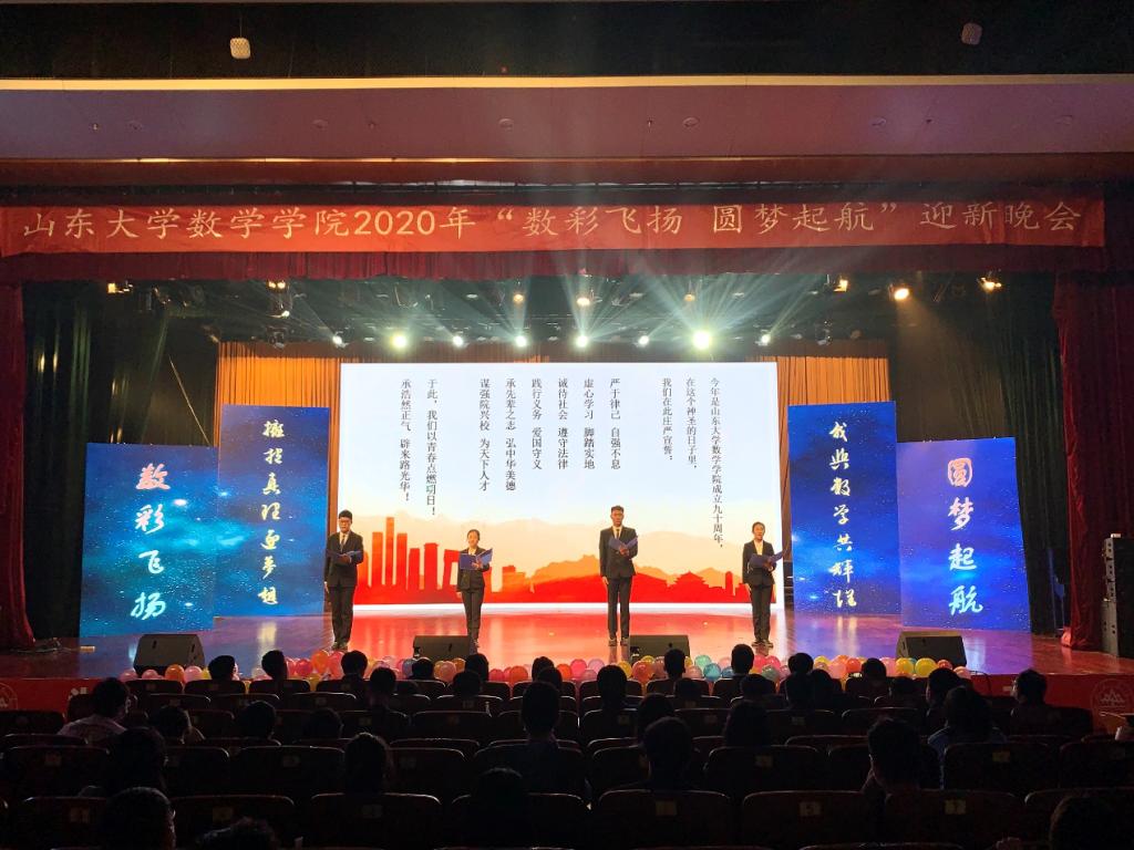 11月15日晚,beat365在线体育官网登录入口2020年“数彩飞扬 圆梦起航”迎新晚会在中心校区音乐厅隆重举行。学院党委书记曲明军,副院长王光辉、赵立璐,副书记王苗雨、路云生以及学院老师们和20级新生在现场观看了本次迎新晚会。晚会同时通过腾讯会议线上为数院的广大师生进行了现场直播。曲明军为本次晚会开场致辞,他提到2020年是不平凡的一年,2020级同学也是不平凡的一届,希望同学们能够不负韶华、努力进取。晚会节目多样、形式丰富、精彩纷呈,全程掌声迭起,笑语不断,与会嘉宾还为幸运观众抽取了奖品。
