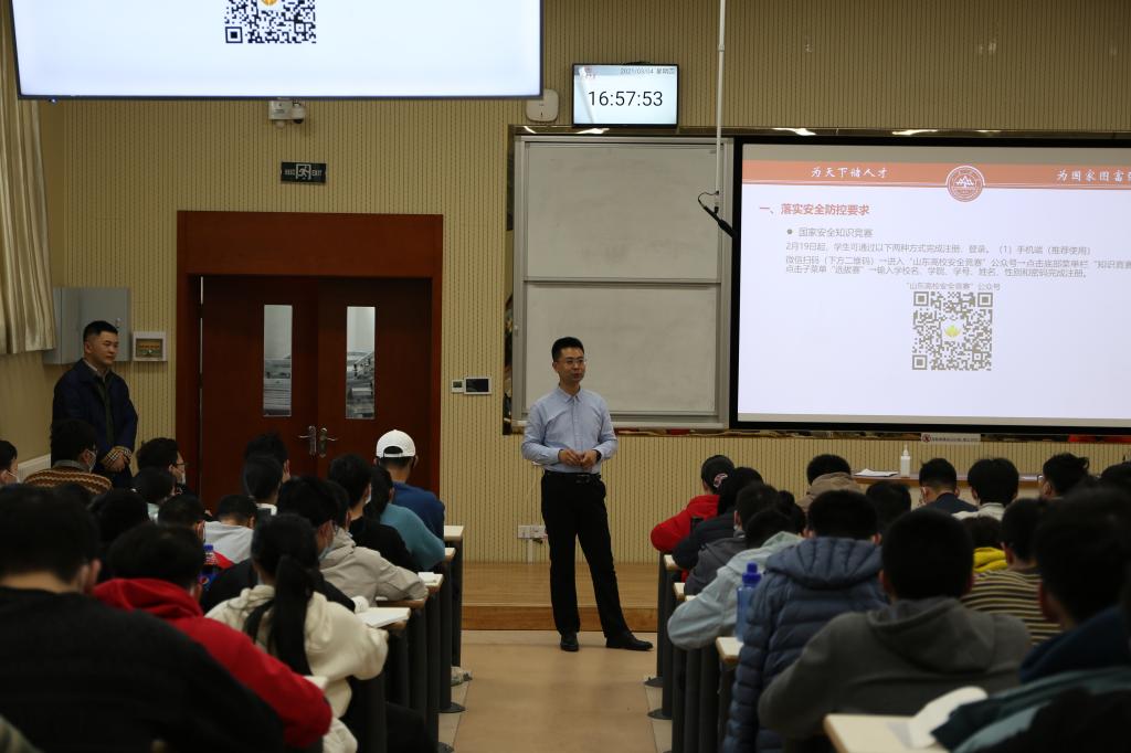 路云生首先介绍了此次竞赛的流程以及赛事的重要性。他讲到,举办此次竞赛是为了深入学习贯彻习近平新时代中国特色社会主义思想,通过竞赛的形式普及国家安全知识,教育引导同学们牢固树立国家安全意识,提升维护国家安全的能力,营造良好的高校国家安全教育氛围。