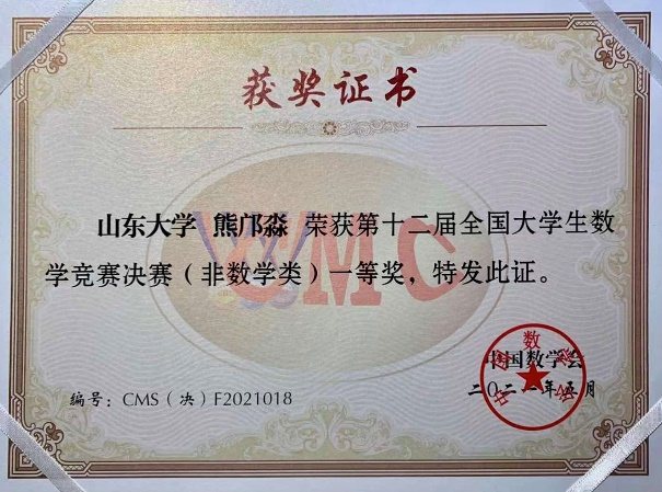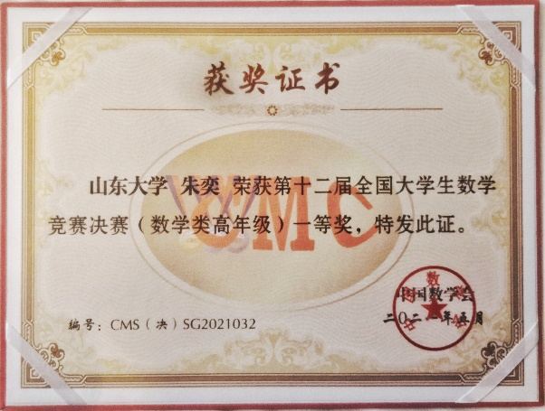 5月15日,第十二届全国大学生数学竞赛决赛在吉林大学举行。经评审,beat365在线体育官网登录入口17名参赛学生共获一等奖2项、二等奖8项、三等奖7项,其中朱奕、熊邝淼获得一等奖,山大学子再次取得优异成绩。