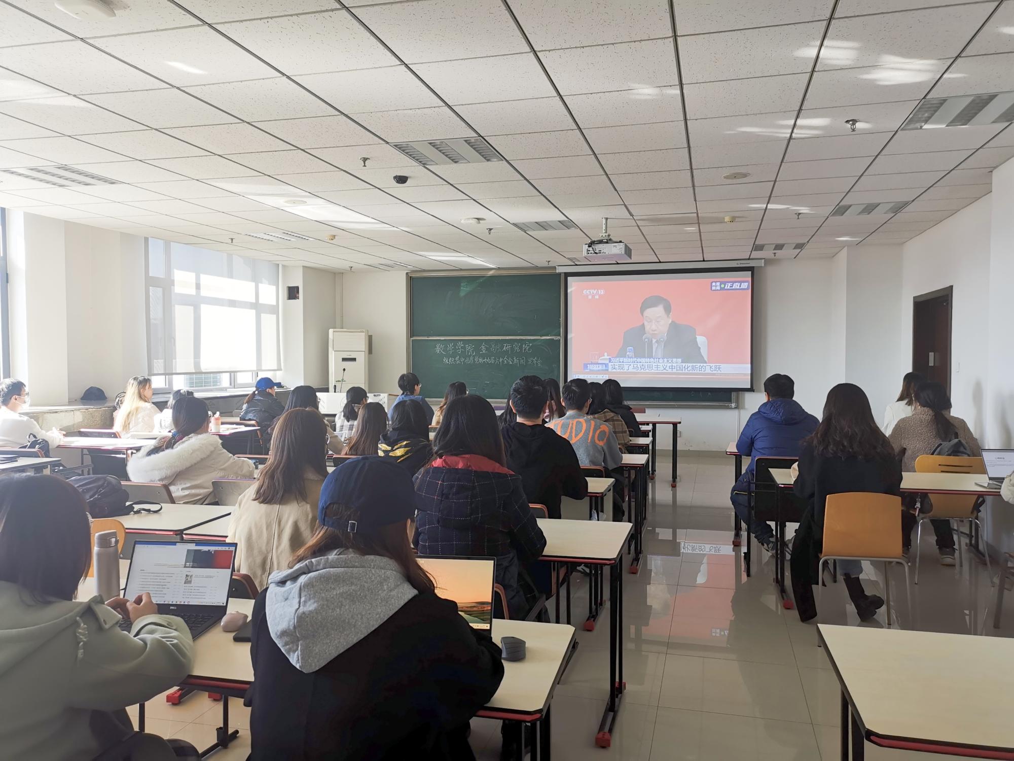 2021年11月8日至11月11日,党的十九届六中全会在北京召开。根据中共中央部署,11月12日上午10时举行新闻发布会,介绍党的十九届六中全会精神。beat365在线体育官网登录入口、金融研究院高度重视加强学生理论武装工作,第一时间组织学生集中观看,深入学习领会党的十九届六中全会精神,为部署贯彻落实工作打下扎实基础。