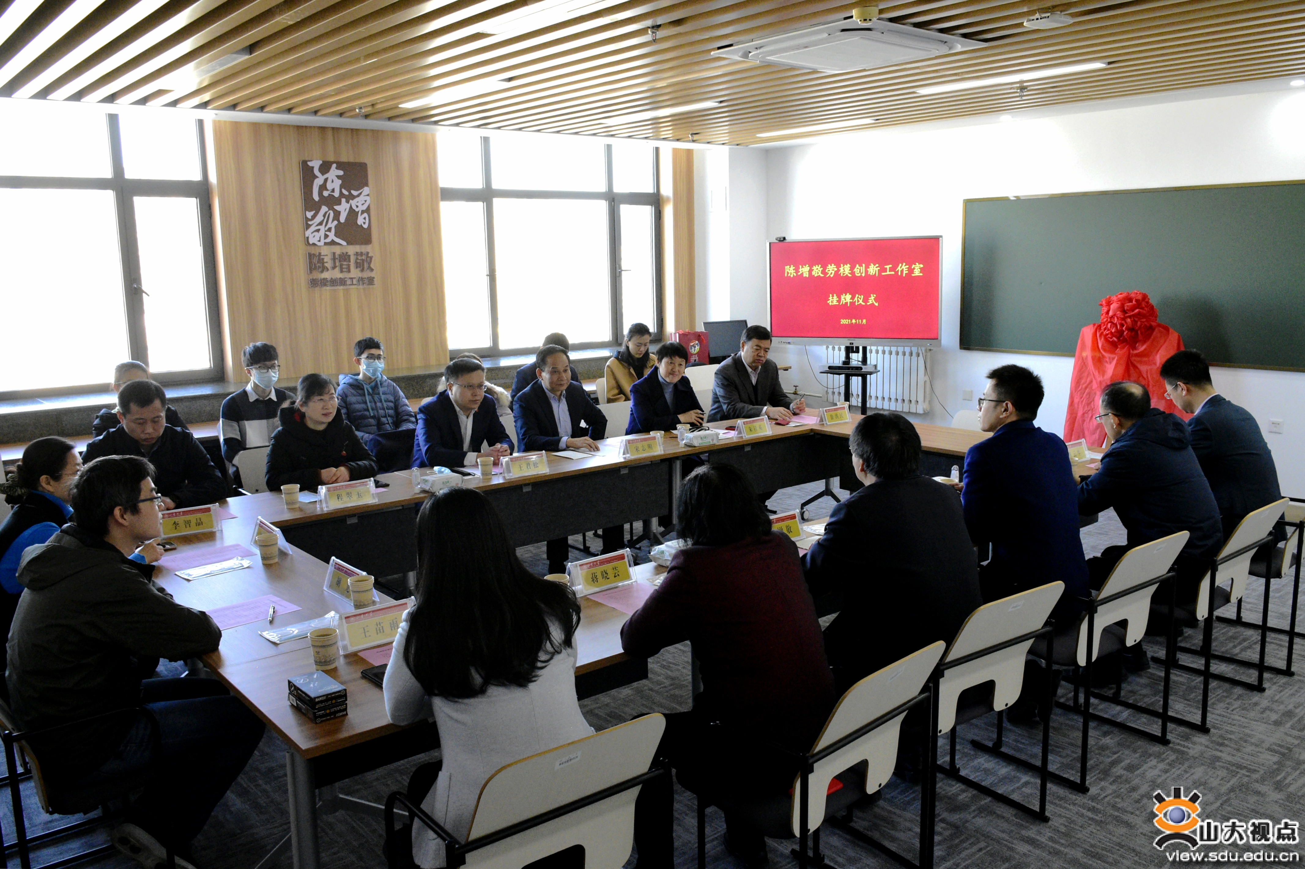[本站讯]11月24日,山东省教育系统首家劳模和工匠人才创新工作室——“陈增敬劳模创新工作室”在beat365在线体育官网登录入口中心校区举行挂牌仪式。省教育工会主席宋志明、beat365在线体育官网登录入口党委副书记王君松出席仪式。