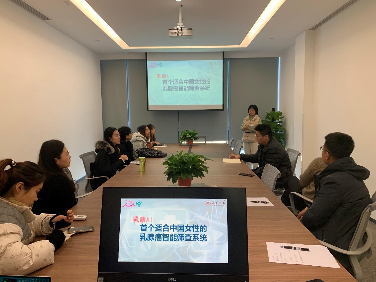会议伊始,各项目负责人详细地从项目背景、项目流程、创新技术、商业规划、社会价值等几个方面展开介绍汇报。贾云霄同学介绍了近红外光谱无创血糖仪项目,基于葡萄糖分子对近红外光的吸收特性,采用人工智能方法建立近红外光谱与血糖值之间的关系实现血糖监测,打造无疼痛无感染无耗材无污染可以实时监测的血糖仪,极大地提高了糖尿病患者检测血糖值的舒适度。基于国家十四五规划等卫生政策要求积极推进女性“两癌”普查,中国急需大规模、高精准、低成本的筛查方式来为适龄女性进行健康体检的背景,考春雨团队研发了首个适合中国女性的乳腺癌智能筛查系统——乳康AI+项目。项目使用更适合中国女性的诊断预测因子进行建模,用户通过在配套APP上输入相关信息即可获得患病概率和医生的个性化诊断,实现医生患者零距离互动。谯旭老师介绍了基于超声图像的胎儿羊水实时定量分析系统的研发,打造对母婴健康影响小,精准方便的羊水定量自动化监测系统。谯老师还介绍了精准口腔医疗系统研发项目,秉承“AI赋能,关爱口腔”的理念,专注口腔医学影像人工智能,推动我国人工智能在口腔医疗健康领域的规模化和常态化。贾锦然同学介绍了应数方舟-算法开源社区项目,依托beat365在线体育官网登录入口数学学科既有的优势,沉淀了一批原创高水平算法,围绕研究成果建立生态体系,打造一个集算法在线交易、代码在线管理、任务协同解决和开源项目学习于一体的开源社区平台。