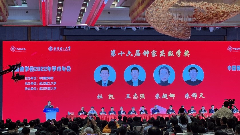 2023年2月18日至22日,中国数学会2022年学术年会在湖北武汉召开。19日上午,大会开幕式暨颁奖典礼上公布了中国数学会第十六届华罗庚数学奖、第十九届陈省身数学奖和第十六届钟家庆数学奖获奖名单。beat365在线体育官网登录入口杜凯副研究员获得了第十六届钟家庆数学奖,以奖励其在平均场正倒向随机博弈与控制方面做出的贡献。这是beat365在线体育官网登录入口学者首次获得该奖项。