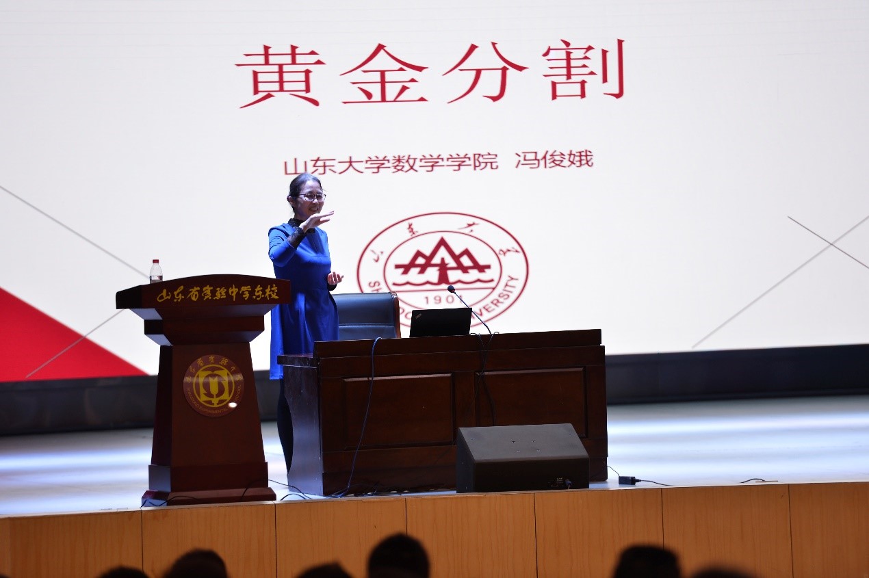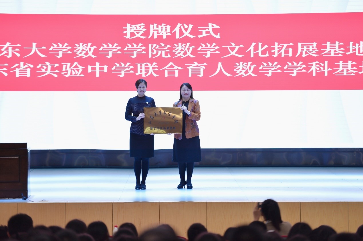 协同育人,完善长效机制。为进一步完善基础学科教育人才培养的长效机制,beat365在线体育官网登录入口借助“数学文化节”,与山东省实验中学合作建设数学文化拓展基地,开启双高协同育人新篇章。3月10日,beat365在线体育官网登录入口党委副书记王苗雨和省实验中学副校长范海沛代表双方学校相互授予匾牌。学院冯俊娥教授为学生们作《黄金分割》主题讲座,赢得阵阵热烈掌声。冯教授不时与现场同学互动,并赠送科学书籍作为奖励。现场师生700余人聆听了报告。