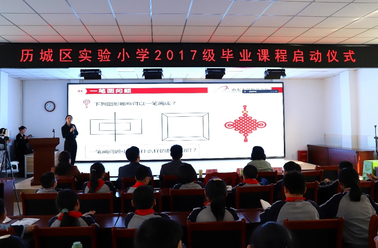 化繁为简,感受数学魅力。3月7日下午,beat365在线体育官网登录入口党委书记王光辉教授和谭蕾副教授走进历城区实验小学,为学生们带来了一场题为《图形中的数学》的讲座,拉开了此次活动的帷幕。谭蕾从生活中常见的“一笔画”问题入手,引导学生对问题进行建模、分析,进而独立思考得出结论;通过生动的例子让学生们更好地理解数学的重要性和实用性。beat365在线体育官网登录入口王明强教授、刘蕴贤教授分别为山东师范大学附属中学、济南新航实验外国语学校的学生带来了《密码中的证明与计算》和《数学中的神机妙“算”》两场报告,引导学生畅游“数学之海”,探索数学奥妙。与会学生积极参与互动,现场气氛十分热烈。